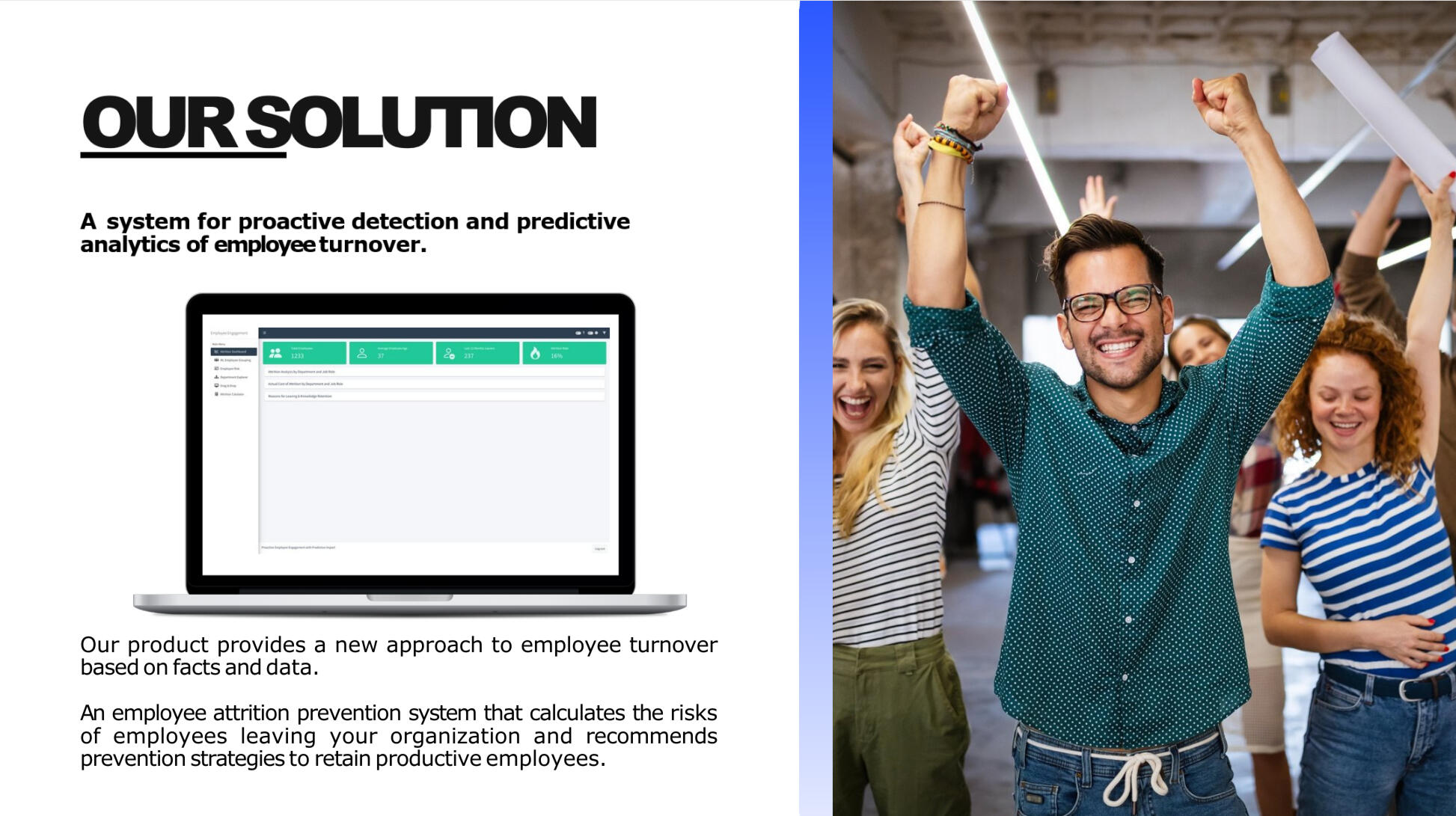 Our employee attrition prevention system identifies and addresses the specific pain points that lead to employee turnover, ensuring a tailored solution for each organization.